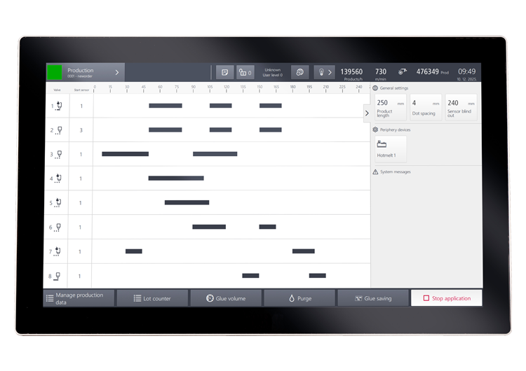 With the Xpect glue, you have the adhesive application firmly under control. Up to 8 channels can be individually programmed.